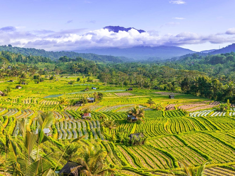 - Au fil du chemin, vous rencontrerez les agriculteurs et découvrirez leur quotidien. Votre guide vous expliquera le fonctionnement du système d’irrigation traditionnel Subak, inscrit au patrimoine mondial de l’UNESCO. Si le ciel est dégagé, vous profiterez d’une vue spectaculaire sur le volcan Agung, sommet sacré de l’île.